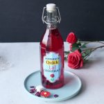 -In a serving glass,add ice cubes,basil seeds,water,lal sharbat and stir.