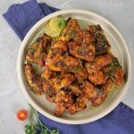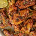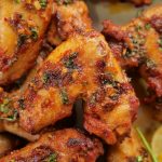 -In an air fryer basket,place marinated chicken wings,spray cooking oil & air fry at 180C for 5-6 minutes.