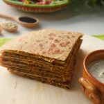 Take another dough and roll out with the help of rolling pin,add & spread prepared radish mixture, place another rolled dough over it and press the edges then sprinkle dry flour and roll out gently (makes 5-6)