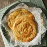 Dough per maida chirak dein aur rolling pin ki madad sa bail lein (roll as thin as possible).