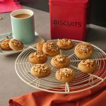 Place them in a baking tray,apply egg yolk with the help of brush,add almonds & press gently (keep some space between them as they expand while baking).