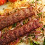 -Dip your hand in ice cold water and take meat mixture and shape the kabab on skewer (Makes 10-12) & let them rest for 30 minutes, then grill until done flip in between.