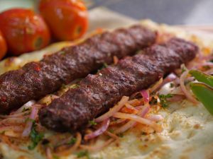 -Dip your hand in ice cold water and take meat mixture and shape the kabab on skewer (Makes 10-12) & let them rest for 30 minutes, then grill until done flip in between.