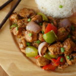 In a wok,add oil and marinated chicken,cook until chicken is golden and set aside.