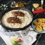 -Cast iron pan mein cooking oil dal dein aur chicken fillets ko halki ancch per dono sides sa paka lein (5-6 minutes each side) & side per rakh dein.