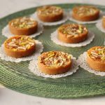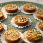 Clean surface pe butter paper len or us par cookie cutter rakhen. Chana daal halwa daal kar press karen, badam pista daal kar dubara press kar k set karen.