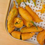 -Dip stuffed chilli in pakora batter & add in hot cooking oil & fry on medium flame until golden.