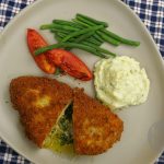 Coat the chicken fillets well with the seasoned flour, dip the floured chicken in the egg mixture and then roll in the bread crumbs. Repeat the process and again refrigerate for 20 minutes.