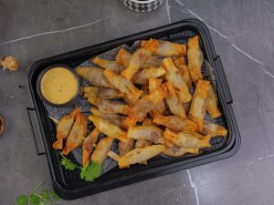 -In frying pan,heat cooking oil & fry on low flame until golden & crispy (makes 40).