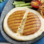 -On patty,add & spread cheese spread,add mozzarella cheese & flip another patty,press & seal the edges (makes 5).