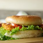 Burger bun per chutney dal ker salad patta,grilled chicken fillets,pyaz,tomato ketchup aur tamatar slices rakh dein.