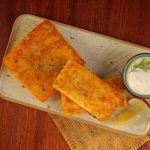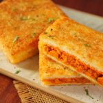 -In another flat bottom pan, add prepared bread crumbs, coat prepared bread sandwich.