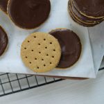 -Biscuits ki ek side per melted chocolate laga lein aur room temperature per set ho janay tak chor dein (makes 28).