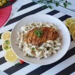 On a serving dish,add pasta,grilled chicken and garnish with fresh parsley & serve!