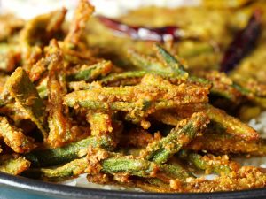-In a bowl,add okra,add prepared spice mix,cover,shake well & let it rest for 10 minutes.