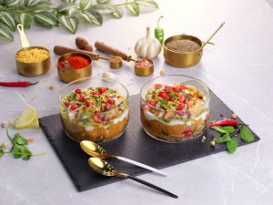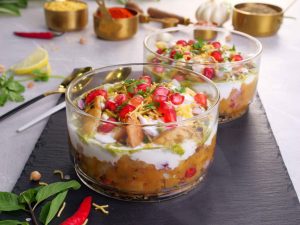 -Garnish with whisked yoghurt, pomegranate, daal sev, & serve!
