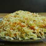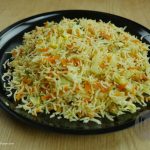 Take another pan and add 1 tbs oil to it, crack an egg and stir it quickly to make it in threads. Take out egg set aside. Add 1 tbs of oil and add garlic to it. Then add spring onion (white part) and carrot and mix well. Next add cabbage, spring onion, salt, Chinese salt, black pepper, soya sauce and vinegar.