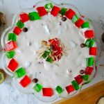 Red & green jelly dal ker mix karein (serving sa pehlay jelly shamil karein).