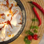 In a bowl, add yogurt, olpers cream, milk, pink salt, sugar powder, whisk until smooth & well combined, meethi dahi is ready! set aside.