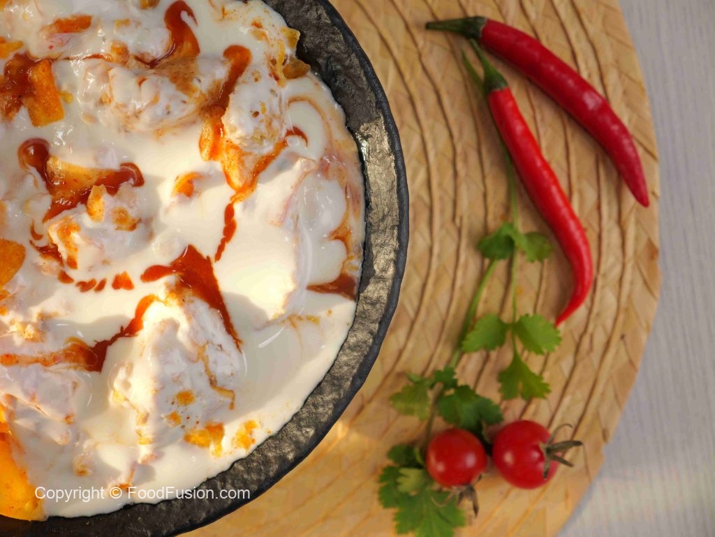 -Take them out & squeeze gently to remove excess water & add in prepared creamy sweet yogurt.