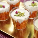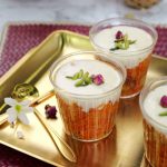 -Serving glass mein tayyar gajar halwa aur creamy khoya dal dein,pista aur dried rose sa garnish ker ka serve!