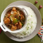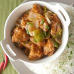 Garnish with green onion leaves and serve with rice.