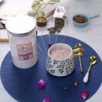 -In blender, add milk powder, Kashmiri tea leaves, sugar, star anise, green cardamom, cloves, cinnamon stick, baking soda, pink salt, pink food color & grind well.