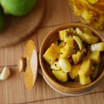 Desi kary ko cheel ker cubes mein cut ker lein.