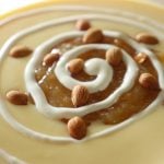 Serving bowl cooked khubani mixture aur tayyar custard dal dein aur cooked khubani mixture,cream aur khubani ka badam sa garnish ker ka serve karein.
