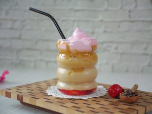 Bowl mein cream,powdered cheeni aur vanill essence dal dein aur fluffy hunay tak beat ker lein.