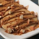 On serving plate,place lotus pancakes,drizzle lotus spread,sprinkle crushed caramel biscuit,almonds & serve!