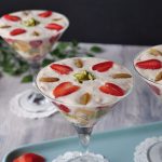 -Strawberry,kishmish aur pista sa garnish ker lein
