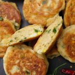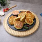 -In a frying pan,heat cooking oil,pipe out prepared mixture & flatten with the help of greased spoon & fry pancakes from both sides on low flame until golden brown.
