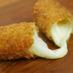 Cut the mozzarella cheese into ½ inch thick sticks.