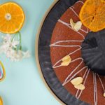 -Icing, badam aur dehydrated orange slices se garnish karen.