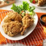 Crispy air fried chicken ko sauce & salad ka sath serve karen.