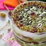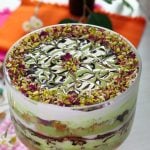 -Trifle bowl mein sabse pehle plain cake dal kar spread karein,phir sugar syrup,chocolate syrup,pista sauce,dried rose petals,pistachios,almonds aur ice cream slices daal kar layer banayein.