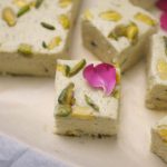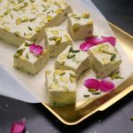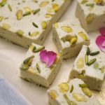 -Mold ko cooking oil sa grease karein (lined with cling film),pista aur til ka mixture dal ker evenly pheela lein aur bech mein pista dal dein aur set ho janay tak 2-3 hours kliya refrigerate ker lein.