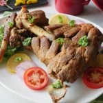 Baking tray per aluminum foil aur butter paper laga ker marinated mutton leg rakh ker marinade dal dein aur foil ko properly seal ker lein.