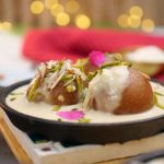 -Heated small cast iron pan mein gulab jamun,tayyar garam rabri,pista aur badam dal dein aur rose petal sa garnish ker ka serve karein!