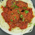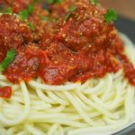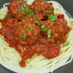 Spaghetti ko platter main daalein is per meatballs sauce ke saath daalein upper se hara dhania aur apni marzi ki cheese se garnish kar ke
