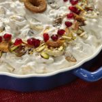 -In a serving dish,add prepared cream fruit chaat & garnish with pistachios,almonds,fig,pomegranate,fig & serve!