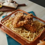 Karhai mein cooking oil (155 C) per garam karein aur chicken pieces ko halki ancch per golden & crispy hunay tak fry ker lein (10-12 minutes).