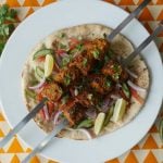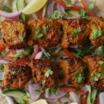 -Skewers ko (jaltay hoye koyla) bbq grill per tamam sides sa grill ker lein aur oil basting ker lein.