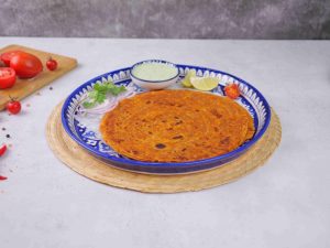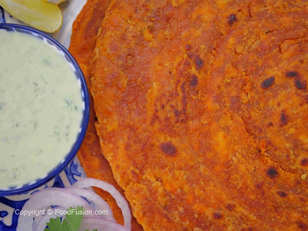 -On a heated griddle, place rolled dough,add desi ghee & fry from both sides until done (makes 5)
