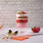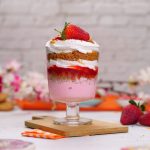-Add strawberry flavour,whipped cream,strawberry sauce,crushed biscuits,garnish with strawberry & serve!