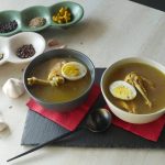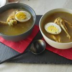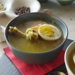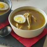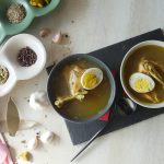 Now strain the stock with the help of the strainer, reserve chicken for serving & discard the leftover.