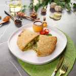 -Add prepared pesto & spread on half side,add mozzarella cheese,baby spinach,sun-dried tomatoes, fold,seal properly & coat with breadcrumbs.