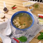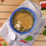 -Add lemon grass,ginger,onion,kaffir lime leaves,fresh coriander,pink salt,sugar,soy sauce,lemon juice,fish sauce,thai red chillies,chicken stock cube,cover partially & simmer cook on low flame for 25-30 minutes.
