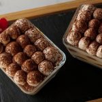 Cut ladyfinger biscuits in half and dip the ladyfingers into dissolved coffee one at a time.